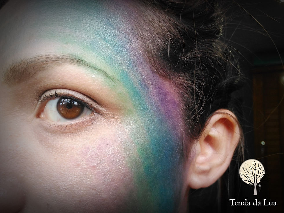 Logo após, passei a sombra verde, mesclando com as outras duas.